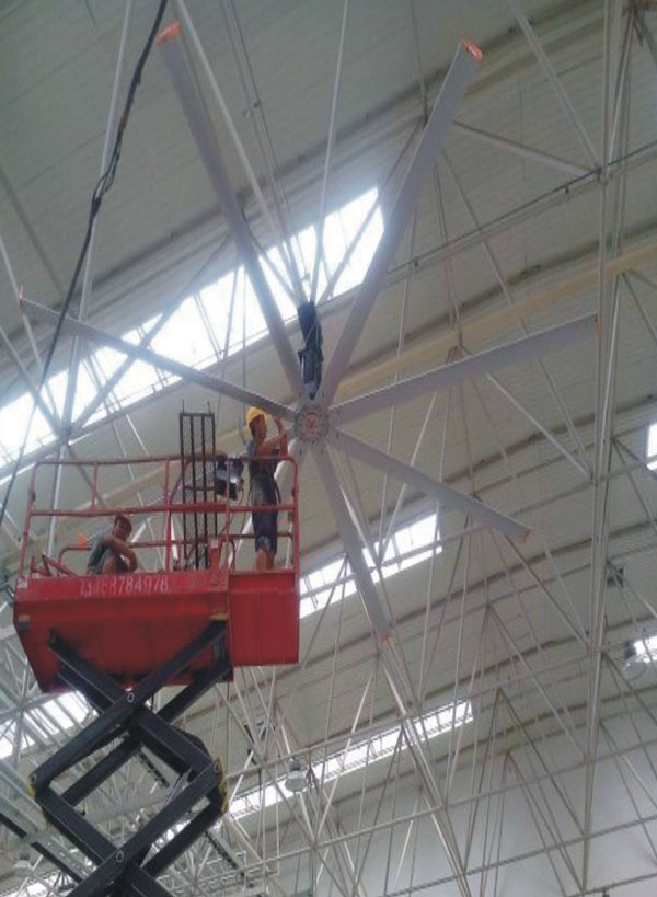 我公司生產(chǎn)的大型工業(yè)吊扇直接懸掛在廠房屋梁下,風(fēng)力柔和,能加快車(chē)間空氣流通,有效降低車(chē)間內(nèi)溫度,改善車(chē)間空氣環(huán)境質(zhì)量,有利于員工的身體健康。